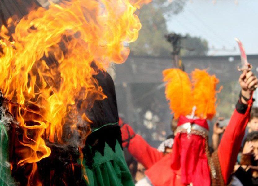 به گزارش آستانخبر؛ هر ساله و در روز عاشورا مراسم آتشزدن خیمههای حضرت اباعبدالله الحسین (ع) خاندان عصمت و طهارت و اسیران دشت نینوا عصر عاشورا در حرم سید جلالالدین اشرف برگزار شد.