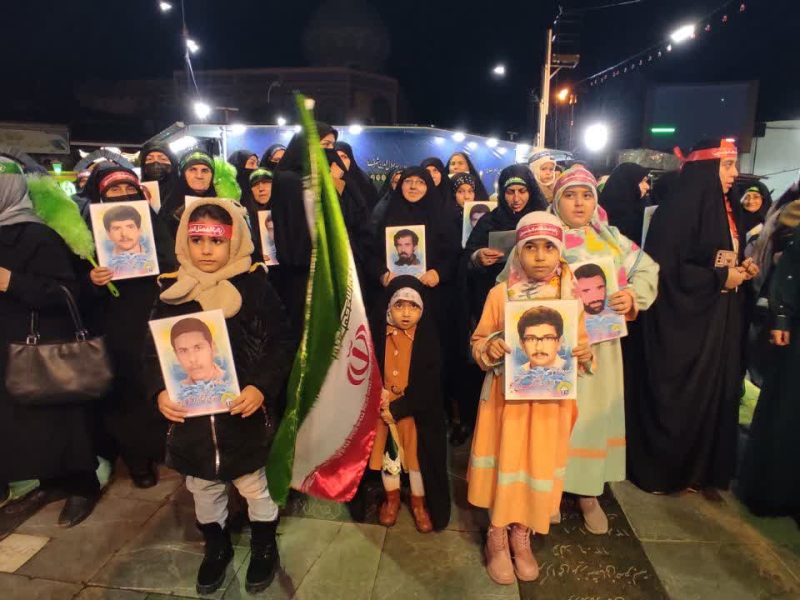 در جای‌جای حرم، توزیع سربند، عکس تمثال شهدا، و پلاکاردهایی با تصویر حاج قاسم و شعارهای مقاومت، همراه با پرچم‌های کوچکی که با اشتیاق در دست کودکان بود، جلوه‌ای از اتحاد و همدلی را به نمایش می‌گذاشت.